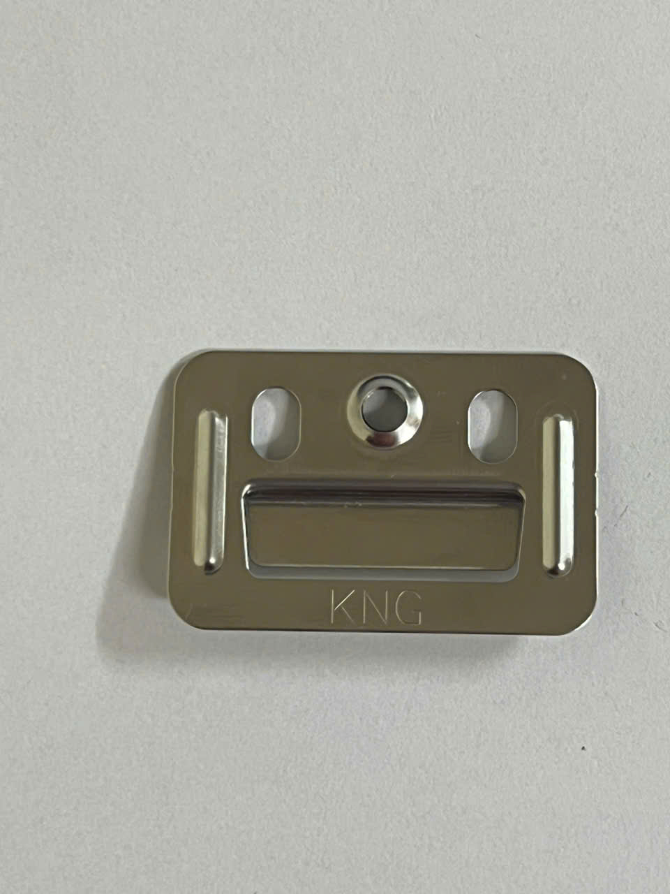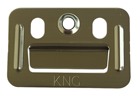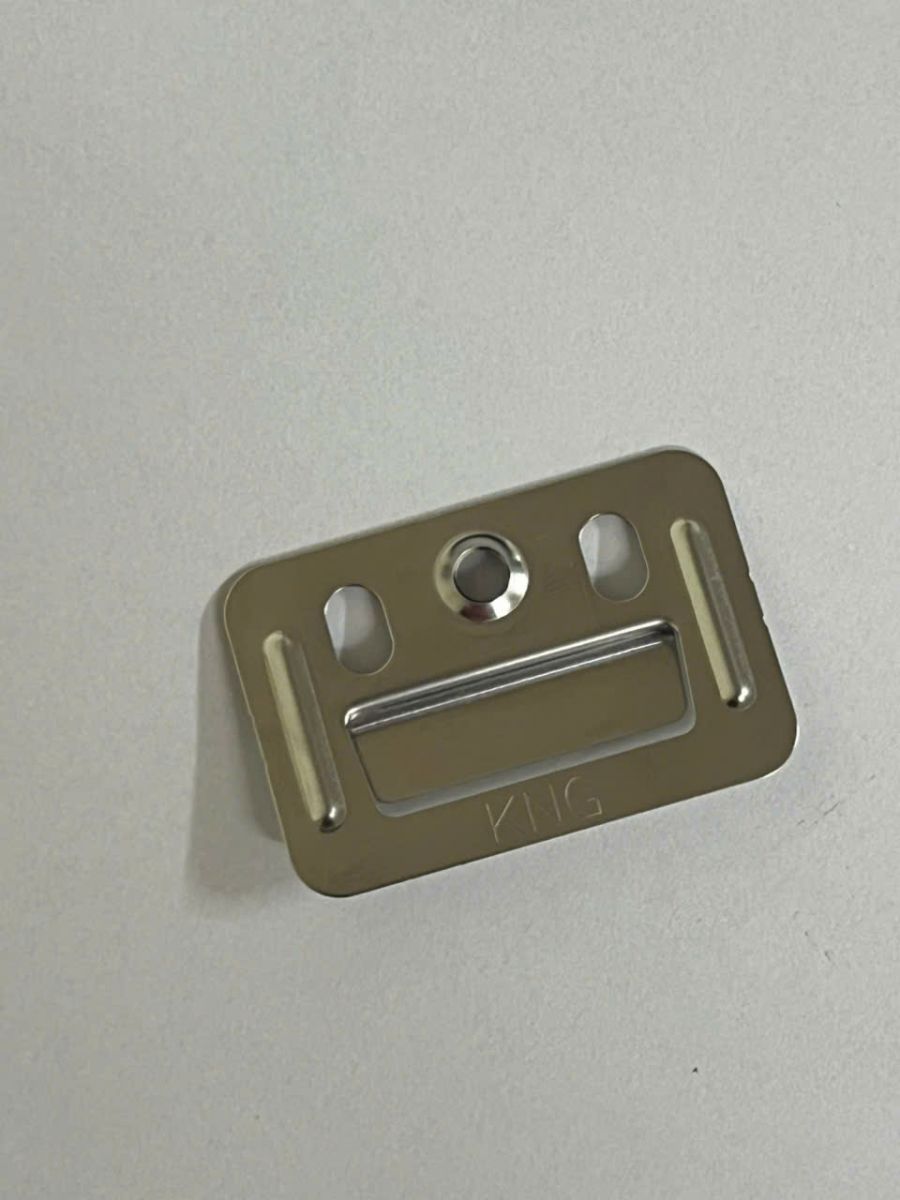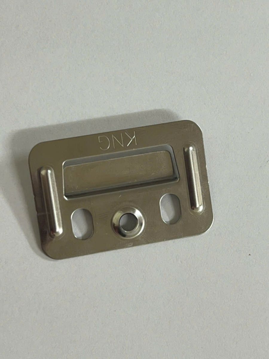 KNG Clipfix có thiết kế hình chữ nhật với kích thước nhỏ gọn nhưng được tính toán kỹ lưỡng để đảm bảo khả năng kẹp chặt và liên kết vững chắc. Toàn bộ sản phẩm được gia công từ thép không gỉ SUS201 cao cấp, mang lại độ bền vượt trội, khả năng chống gỉ sét tuyệt đối và vẻ ngoài sang trọng với màu vàng đồng đặc trưng. Logo KNG được khắc laser tinh tế trên bề mặt sản phẩm, khẳng định thương hiệu và chất lượng từ nhà sản xuất.